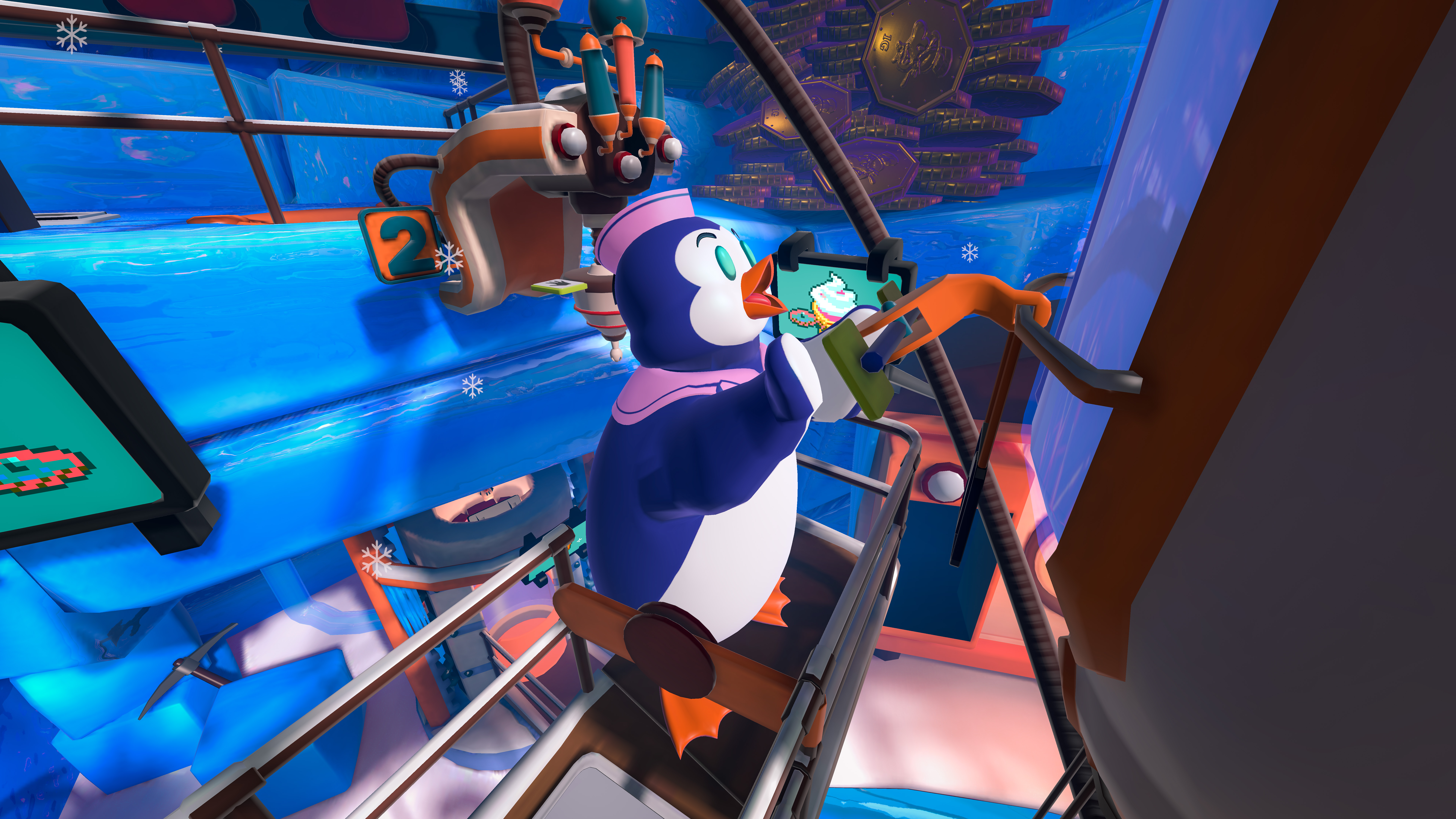Have you ever wondered how an ice-cream vending machines look like from the inside? Worry not! We got you covered. In Frozen Factory you and your best friend slip into the role of two penguin workers who dedicated their lives to making ice cream inside a fantastic ice cream factory. Can you solve the puzzle and create the ULTIMATE ice-cream? Don’t forget to keep track of the time, cause this is a race. The demanding customer doesn’t want to wait all day. Can you and your penguin-buddy make it? Frozen Factory is a fun, easy-to-learn, and family-friendly VR puzzle experience for two players.